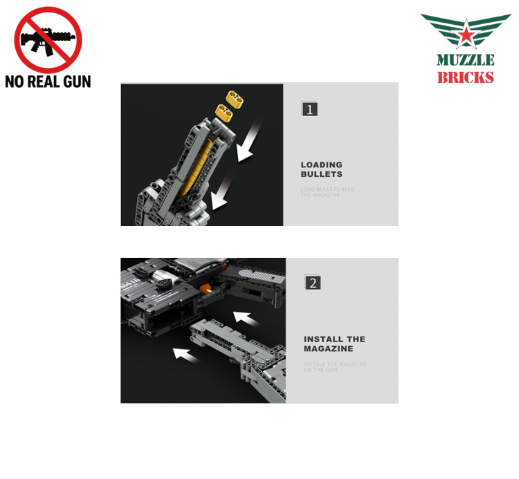 Our brick built models are designed for collectors who love detailed builds with smooth, realistic motion. Each one uses a simple system of sliding parts and brick based levers to create a satisfying mechanical action fully hand powered and completely non functional as a weapon. They make unique display pieces for anyone who enjoys clever engineering and creative design.
