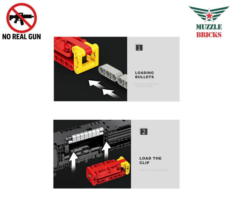 Our brick built models are designed for collectors who love detailed builds with smooth, realistic motion. Each one uses a simple system of sliding parts and brick based levers to create a satisfying mechanical action fully hand powered and completely non functional as a weapon. They make unique display pieces for anyone who enjoys clever engineering and creative design.